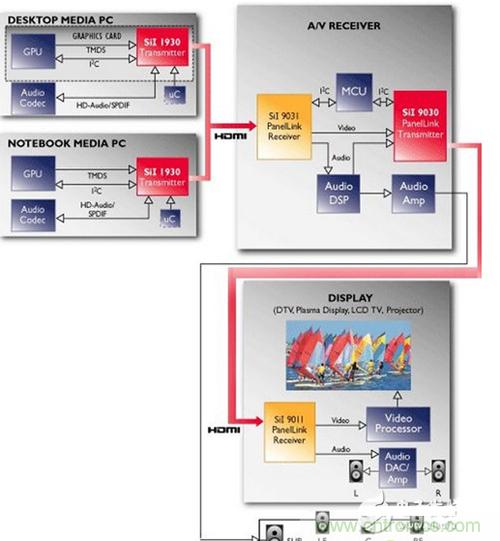 HDMI(High DefiniTIon MulTImedia)是在2002年由日立、松下、飛利浦、Silicon Image、索尼、湯姆遜、東芝共7家公司成立的HDMI組織制定的全新數字視頻/音頻傳輸標準。初始版本為HDMI 1.0,06年底繼而頒布1.3標準,HDMI在針腳上與DVI兼容,只是封裝規格不同,但HDMI相較于DVI大幅增加了信道帶寬,輕松應對目前高端市場高分辨率高刷新率帶來的數據傳輸壓力。