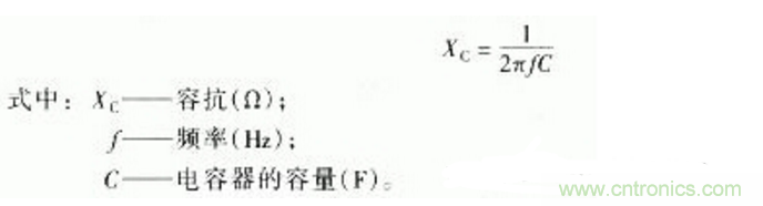 電容器對(duì)交流電有特殊的電阻特性,稱為容抗。容抗可由下式算出,即