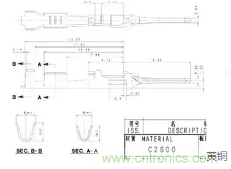 從該圖紙英文品名為端子,且是接插式方式連接,根據材質顯示為黃銅,所以歸入品目8536.9項下,再根據具體的電壓,歸入相應的子目。