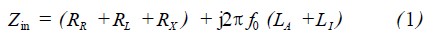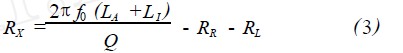 式中,RR為輻射電阻;RL為環(huán)型導(dǎo)體損耗電阻;RX為額外歐姆損耗電阻;LA為環(huán)型天線電感;L1為環(huán)型導(dǎo)體電感。