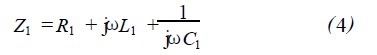 圖4中,閱讀器的發(fā)送器出口產(chǎn)生高頻電壓u2,接收器直接與天線線圈L1連接。串聯(lián)諧振電路的總阻抗Z1為各項單阻抗之和,即: