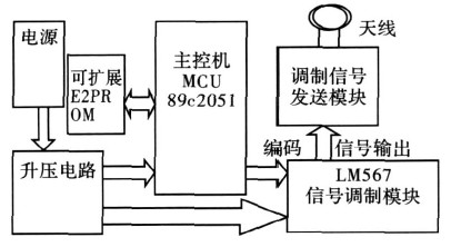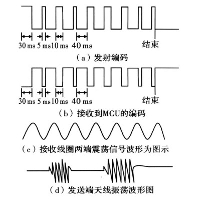 本系統(tǒng)的閱讀器可在6cm范圍內(nèi)識別應(yīng)答器的有無,若有應(yīng)答器在監(jiān)測范圍內(nèi),則給出明確的指示并讀取應(yīng)答器預(yù)設(shè)的4位編碼,然后顯示;另外,應(yīng)答器部分還可以通過開關(guān)設(shè)置4位編碼在閱讀器識別范圍內(nèi)送出編碼信號。同時閱讀器還具有對應(yīng)答器的編碼進行寫入的功能,由應(yīng)答器接收并儲存。設(shè)計中重點是保證正確率,可以從軟件上增加校驗碼來提高無線傳輸?shù)目煽柯省?/p>