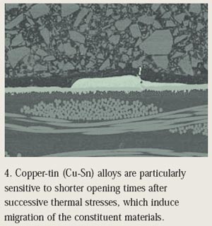 圖4說(shuō)明了銅-錫合金在歷經(jīng)脈動(dòng)負(fù)載沖擊后發(fā)生的性能漂移過(guò)程。基于功率負(fù)載的幅值和持續(xù)時(shí)間,這些種類(lèi)的保險(xiǎn)絲將改變其特性從而使熔斷時(shí)間變短。保持芯片保險(xiǎn)絲阻值穩(wěn)定的技術(shù)將防止熔斷特性發(fā)生這種漂移。