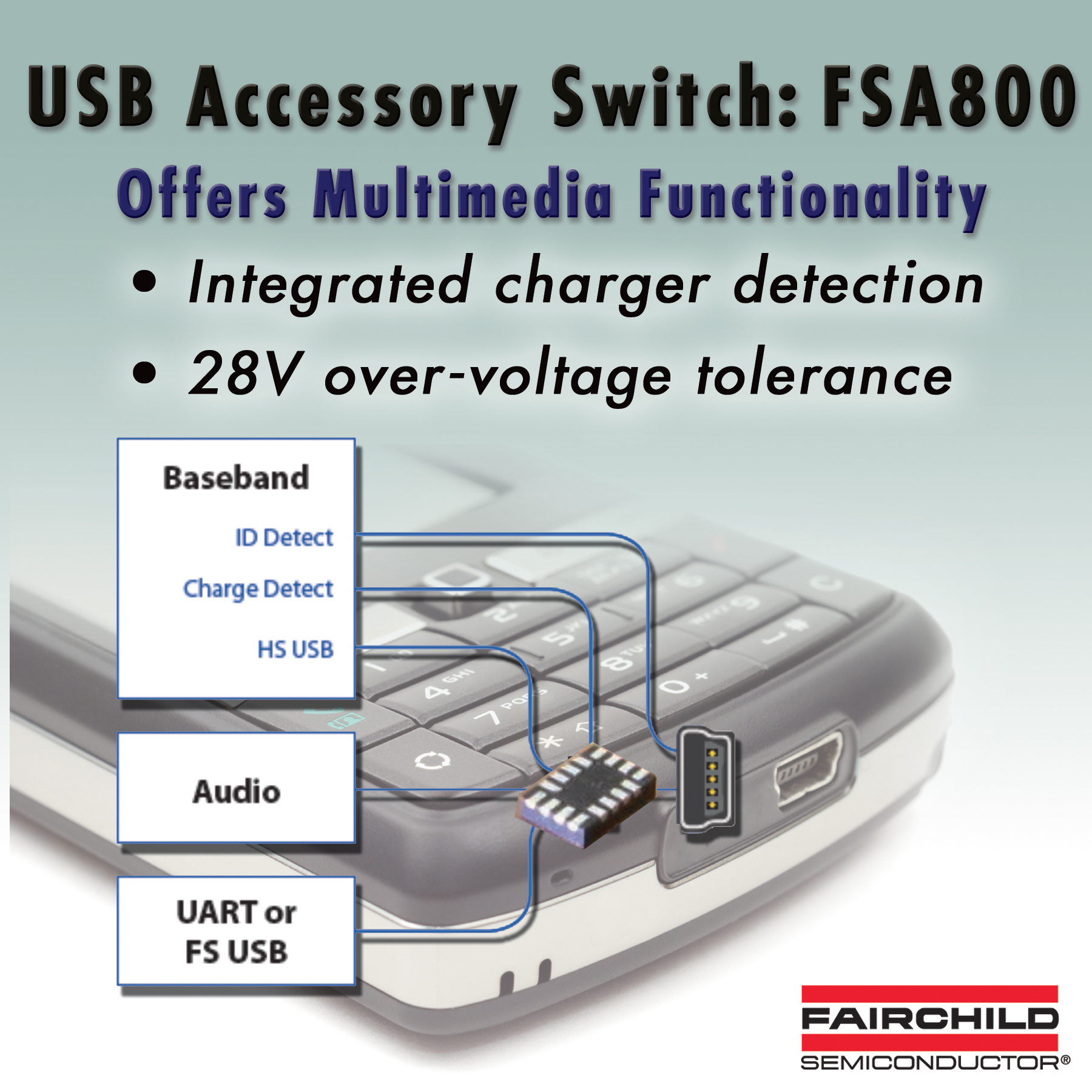 飛兆半導(dǎo)體公司 (Fairchild Semiconductor)為手機(jī)、PDA和MP3播放器設(shè)計人員提供全新USB附件開關(guān)產(chǎn)品FSA800。FSA800是業(yè)界最小的器件,將所有主要的多媒體功能集成進(jìn)薄型UMLP封裝(1.8mm x 2.6mm x 0.55mm)中。它具有內(nèi)置充電檢測功能、28V的過壓容差、內(nèi)置終止電阻器,以及負(fù)擺幅功能。通過在緊湊型封裝中集成了多種功能,可以簡化便攜設(shè)計并減少外部元件數(shù)目。
