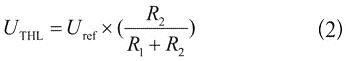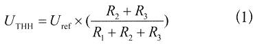 式(1)和式(2)是理論上的公式,實(shí)際上,為了將上述的滯回原理應(yīng)用于實(shí)際的電池系統(tǒng),還要考慮一個(gè)參考電壓的問(wèn)題。參考電壓Uref是不能變的,否則上下電壓門限就會(huì)發(fā)生變化。而且參考電壓是由電池電壓供電產(chǎn)生的,它必須比電池電壓低的多,而且功耗極小。