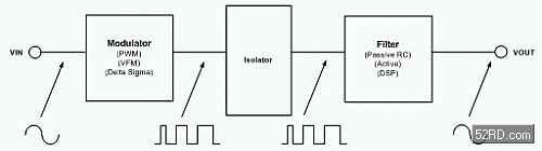 音頻與視頻系統也需要高速和延遲時間最小的隔離資料傳輸以確保原始音頻或視頻內容能夠忠實再生。音頻系統通常使用48ksps模擬數字轉換器,視頻系統則需要資料速率更高的轉換器–它們多半是速率1Msps到10Msps的資料轉換器。我們需要140Mbps隔離元件才能將序列編碼的14位元、10Msps資料串流傳送通過隔離層,這只有現代數字隔離元件才能做到。