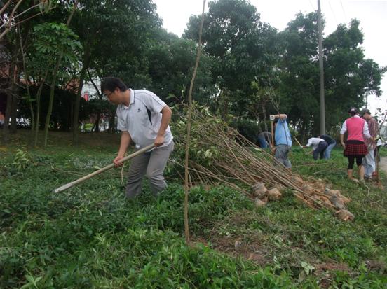 參加此次植樹活動(dòng)的除了檳城電子的全體員工外,還邀請(qǐng)了檳城的代理商和供應(yīng)商參加。總共200多人,共分成了4個(gè)植樹小分隊(duì)。在蔡總的帶領(lǐng)下,我們拿著植樹的工具,拉著小樹苗,迎著春天的暖風(fēng),到了自己的領(lǐng)地。大家的勢(shì)頭都很足,精神抖擻,各個(gè)都掄起鐵鍬鋤頭,為小樹苗挖樹坑。