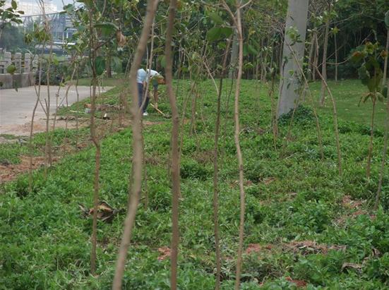 “一年之際在于春,一日之際在于晨”,2月27日一大早,我就和朋友Amy驅(qū)車前往深圳大沙河邊上參加檳城電子公司的義務(wù)植樹活動(dòng)。盡管北方還春寒料峭,可是地處南國(guó)的深圳卻已經(jīng)春光明媚,這天天工作美,一掃往日的陰霾,藍(lán)藍(lán)的天空,白白的云彩,綠綠的草地,一片生機(jī)盎然的景象。