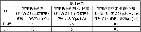 當(dāng)直擊雷擊中實(shí)體和線路(低壓系統(tǒng)、通信線路)都應(yīng)選用Iimp(10/350μS)測(cè)試的SPD,例如LPS中的雷電等電位連接的SPD和在LPZ0A區(qū)的架空線路使用的SPD。
