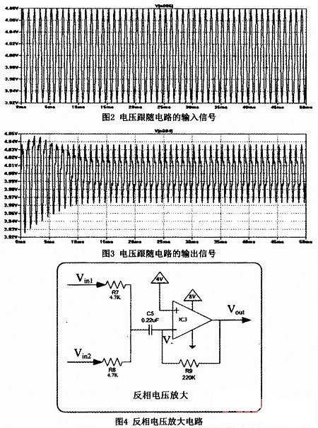 在電壓跟隨電路中,運(yùn)放IC1和IC2起到了電壓跟隨器的作用,將正信號(hào)輸入端疊加了直流偏置的信號(hào),無變化地傳到下一級(jí)。運(yùn)放電壓跟隨器中輸入阻抗很大,輸出阻抗很小。由于輸入阻抗很大,輸入的電壓幾乎無損失地傳遞給運(yùn)放,而輸出阻抗很小,又使輸出的信號(hào)幾乎全部傳遞給后面的電路。運(yùn)放起了很好的緩沖作用,隔斷了后級(jí)對(duì)輸入信號(hào)的影響。