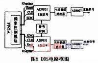 頻率信號(hào)產(chǎn)生電路在FPGA中頻率控制模塊的控制下,產(chǎn)生高精度正弦主振信號(hào)和本振信號(hào),分別用于光調(diào)制和混頻。此電路產(chǎn)生的信號(hào)要求頻率可調(diào),且具有高的頻率穩(wěn)定性和低的相位噪聲,相位抖動(dòng)小,以保證最終的測(cè)量精度。