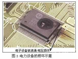 ⑵ 電力設(shè)備的損壞。干擾信號和浪涌對電路的不利影響是每一個電力工程師都不能忽視的問題。在過去繼電器的短時間過載輸入可能是沒有危險的,但是在使用半導體電路的時代里,即使是低能量脈沖也能造成損壞或操作失敗,其損壞見圖3所示。
