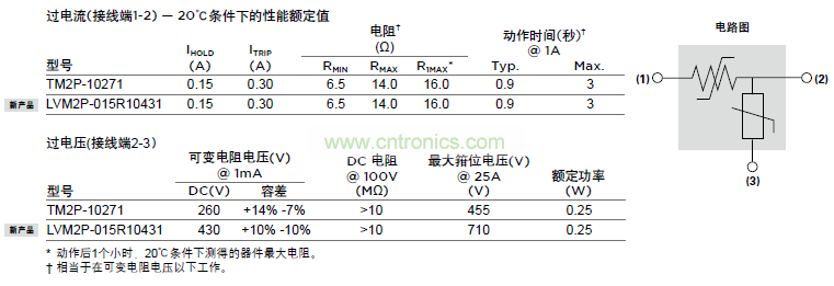 泰科電子(TE)2Pro器件是集成過電流和過壓保護的模塊,符合RoHS標準。在一個器件中集成PolySwitch PPTC(聚合物正溫度系數熱敏電阻)和金屬氧化物壓敏技術,從而減少電路板空間需求和器件數。