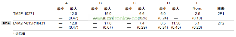 表 2P2 尺寸:毫米(英寸)*