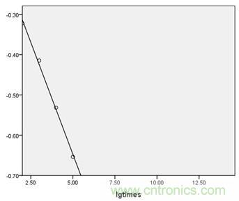 2.2 如果要達到2萬小時的壽命,保險絲需要經(jīng)受近100億次的沖擊,而此數(shù)據(jù)很難利用實驗數(shù)據(jù)達到,所以在此根據(jù)已有的信息作趨勢分析。分析步驟如下: