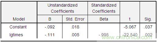 lg(ratio) = -0.092 – 0.111*lg(times),通過t檢驗,此方程關(guān)系非常顯著,如下表。