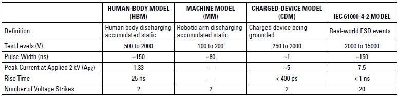 器件級模型和系統(tǒng)級模型有一些明顯的區(qū)別,表 2 列出了這些區(qū)別。表 2 中最后三個參數(電流、上升時間和電擊次數)需特別注意: