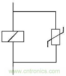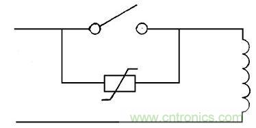 圖9中在繼電器、電磁鐵、磁力開關、電磁閥門的線圈兩端并接壓敏電阻, 能吸收線圈兩端存貯的能量, 延長線圈使用壽命, 防止頻繁開關產(chǎn)生噪音的輻射。