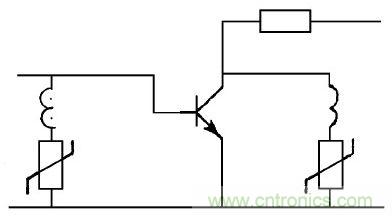 圖11在晶體管電路中, 三極管的e 極和b 極間, c級與b 級間帶有感性的負載兩端, 都可以并聯(lián)壓敏電阻; e 極與c 極接上壓敏電阻器, 能防止輸入過電壓雷擊損壞晶體管。當所控制的負載屬感性的變壓器、鎮(zhèn)流器、電感、逆變器等, 在c 級與b 極間或者在負載線圈兩端并接壓敏電阻, 能有效地抑制電壓對晶體管的損傷。當電路正常工作時, 壓敏電阻處于高阻抗狀態(tài), 而電路中產(chǎn)生過電壓時, 壓敏電阻在毫微秒內(nèi)導通, 限制過電壓的幅度, 使晶體管免受損壞。