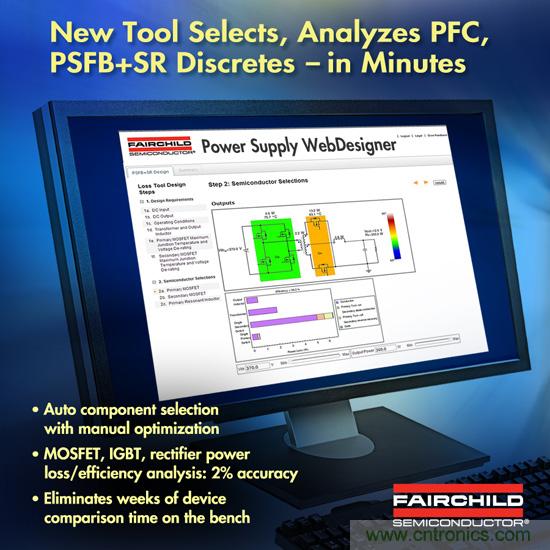 飛兆半導體公司最近將Power Supply WebDesigner (PSW) - 一款在線設(shè)計和模擬工具,可在一分鐘內(nèi)提供完整的設(shè)計–進一步強化,引入傳動系分立式(MOSFET/IGBT/整流器)器件功率損耗和效率分析工具。