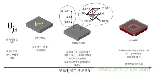 預測精度更高一級的模型是 DELPHI 模型。對于散熱器選擇,DELPHI 模型優于雙熱阻模型的地方在于,前者的上表面細分為溫度不同的內部區域和外部區域,因而可用來初步研究散熱器基座厚度的影響。然而,對于需要散熱器且熱特性極為關鍵的封裝,建議使用詳細模型。