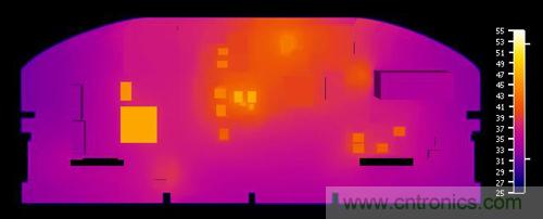 但即便如此,它仍然是一個有用的起點,既有助于了解系統性能,又提供了一個可隨著設計的展開不斷進行優化的模型。該模型為研究元器件布置對元器件及其相鄰元器件的溫度影響提供了一個非常有用的平臺,藉此可以輕松完成調整,模型的重新運行通常也只需要幾分鐘,而不是數小時。