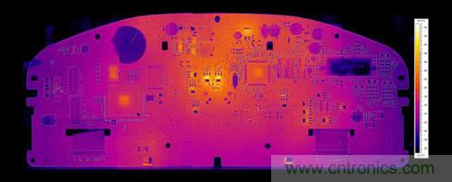 圖 4:設計期間的 CFD 結果與利用紅外攝像機測量的實際 PCB 的對比