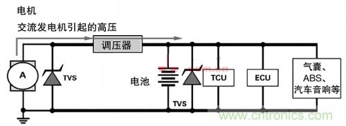 汽車電子設(shè)備越來越多,工程師需要設(shè)計出能在惡劣 環(huán)境下保證其使用壽命的正確解決方案。由于車載電子設(shè)備都與電池和交流發(fā)電機(jī)相連,所有電子設(shè)備的保護(hù)將從這里開始。TVS二極管和變阻器可根據(jù)不同情況使用,保護(hù)車上昂貴的電子設(shè)備。車輛檢測時,國際標(biāo)準(zhǔn)設(shè)立了較高的安全門檻。因此,保護(hù)器件的正確選擇必須達(dá)到甚至超過汽車行業(yè)制訂的相關(guān)標(biāo)準(zhǔn)。
