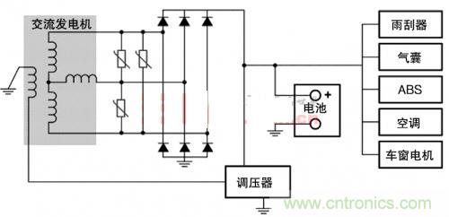 現(xiàn)代汽車設(shè)計中,所有車載電子設(shè)備都要連接電池和交流發(fā)電機(jī)。交流發(fā)電機(jī)是電氣瞬態(tài)的主要來源,其中最 糟的是拋負(fù)載。這種情況發(fā)生在電池已經(jīng)斷開而交流發(fā)電機(jī)正在發(fā)電、其他負(fù)載還在交流發(fā)電機(jī)環(huán)路上時。如果置之不理,電氣尖峰和瞬態(tài)將沿著電線傳遞,導(dǎo)致個別電子設(shè)備和傳感器故障,或永久損壞汽車的電子系統(tǒng)。當(dāng)然,拋負(fù)載失控還會威脅車輛本身的安全性和可靠性。