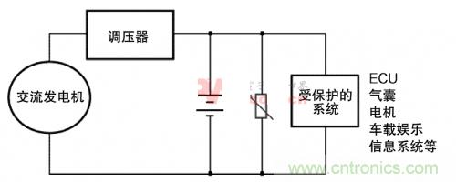 圖3.MOV對汽車子系統(tǒng)供交流發(fā)電機(jī)瞬態(tài)保護(hù)