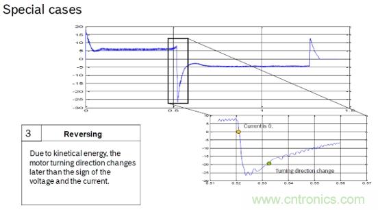 由于電機在啟動,停止,反轉,堵轉時的紋波特征不明顯。如圖5和圖6,不能精準的計數紋波個數。只能通過算法進行補償。這樣紋波計數必然和實際的必然存在誤差。而這誤差隨著車窗操作次數的增加,誤差也會跟著累積。