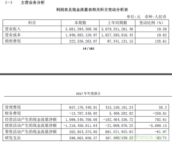 匯頂科技近日還發(fā)布了2017年年度報告以及2018年第一季度報告,報告顯示,公司2017年實現(xiàn)銷售收入約36.82億元,同比增長19.56%;歸屬于上市公司股東的凈利潤為8.87億元,同比增長3.52%。