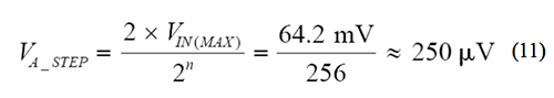 在±25-mV 最大電橋失調范圍內,±32.1-mV 的調整范圍可提供28%的額外調整裕量。對于 8 位 DAC,調整步長為: