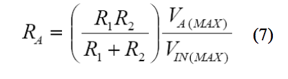 為了找到一個 RA值以允許最大失調調整范圍 VIN(MAX),在給定調整電壓范圍 VA(MAX)的情況下,使 VOUT = 0,求 RA,結果得到