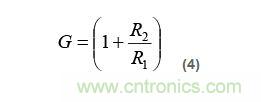 該儀表放大器的傳遞函數在形式上與經典三運放拓撲結構的傳遞函數相同,其計算公式為