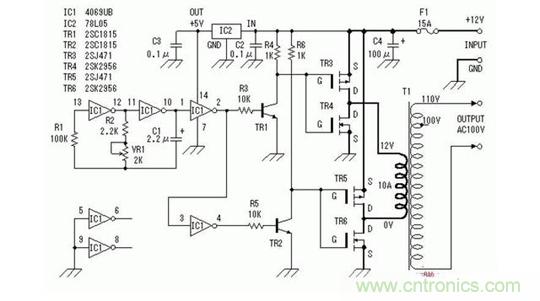 逆變器原理電路:將12V直流變成220V交流電