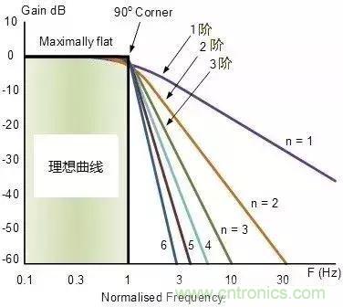 由此可知,濾波器每增加一階,十倍頻程衰減增加20dB,如下圖所示。