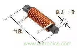 棒形電感有氣隙嗎?當然也有,棒形電感的氣隙就是端點到端點的距離,如圖所示棒形電感的氣隙是非常大的。