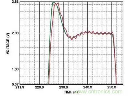 圖7中的振蕩示出了高速運算放大器同相輸入端長度為2.54 cm的印制線的影響。其等效寄生電感為29 nH(10-9H),足以造成持續(xù)的低壓振蕩,會持續(xù)到整個瞬態(tài)響應(yīng)周期。圖7還示出了如何利用接地平面來減小寄生電感的影響。