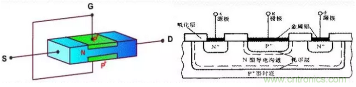 ※場(chǎng)效應(yīng)分類:場(chǎng)效應(yīng)管主要有結(jié)型場(chǎng)效應(yīng)管(JFET)和絕緣柵型場(chǎng)效應(yīng)管(IGFET)。絕緣柵型場(chǎng)效應(yīng)管的襯底(B)與源析(S)連在一起,它的三個(gè)極分別為柵極(G)、漏極(D)和源極(S)。晶體管分NPN和PNP管,它的三個(gè)極分別為基極(b)、集電極(c)、發(fā)射極(e)。場(chǎng)效應(yīng)管的G、D、S極與晶體管的b、c、e極有相似的功能。絕緣柵型效應(yīng)管和結(jié)型場(chǎng)效應(yīng)管的區(qū)別在于它們的導(dǎo)電機(jī)構(gòu)和電流控制原理根本不同,結(jié)型管是利用耗盡區(qū)的寬度變化來改變導(dǎo)電溝道的寬窄以便控制漏極電流,絕緣柵型場(chǎng)效應(yīng)管則是用半導(dǎo)體表面的電場(chǎng)效應(yīng)、電感應(yīng)電荷的多少去改變導(dǎo)電溝道來控制電流。它們性質(zhì)的差異使結(jié)型場(chǎng)效應(yīng)管往往運(yùn)用在功放輸入級(jí)(前級(jí)),絕緣柵型場(chǎng)效應(yīng)管則用在功放末級(jí)(輸出級(jí))。場(chǎng)效應(yīng)管的工作原理和三極管其本一樣,只是他們一個(gè)是壓控型元件,一個(gè)是電流控制元件,場(chǎng)效應(yīng)管只有一個(gè)PN結(jié),如圖所示1-1