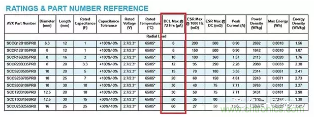 大多數(shù)超級電容器數(shù)據(jù)表顯示了在額定直流電壓和室溫下的漏電流性能,例如AVX的SC系列超級電容器的信息。