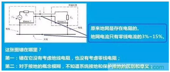 知曉這幾個(gè)概念后,我們來看看IEC給出的有關(guān)TN-C和TT系統(tǒng)的原圖。注意,這兩幅圖是不容置疑的,是有關(guān)接地系統(tǒng)的權(quán)威解釋。