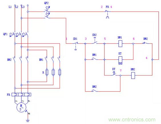 (4)停止。按下SB1→1KM、4KM失電釋放→電動機(jī)停轉(zhuǎn)。