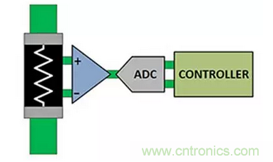電阻器。該電阻通常稱(chēng)為分流器,會(huì)在兩端產(chǎn)生一個(gè)與通過(guò)它的電流成比例的電壓。由于分流電阻器不應(yīng)該顯著影響電流,所以它通常非常小,阻值為毫歐級(jí)或不到一毫歐 (mΩ)。分流電阻器兩端產(chǎn)生的電壓因此也非常小,在被ADC轉(zhuǎn)換之前通常需要放大。