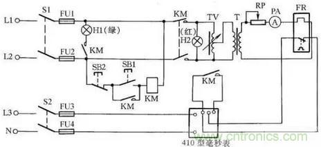 熱繼電器校驗臺如圖20所示,它主要由調壓器TV、降壓變壓器T、電位器RP、410型毫秒表等元件組成。