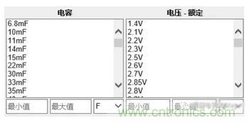 想了解一般市場上超級電容產品“電容值”及“額定電壓”的可選范圍,可在Digi-Key 網站中查詢,相關數值會在產品的特性選項中顯示,如下圖4所示。