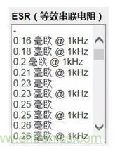 圖6:超級電容器的ESR (等效串聯電阻)篩選列表