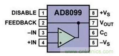 採用低失真引腳排列的一些運(yùn)算放大器,有助于消除上面提及的兩個(gè)問題;而且它還提高了其他兩個(gè)重要方面的性能。LFCSP的低失真引腳排列,如(圖十)所示,將傳統(tǒng)運(yùn)算放大器的引腳排列按著逆時(shí)針方向移動(dòng)一個(gè)引腳,并且增加了一個(gè)輸出引腳作為專用的反饋引腳。