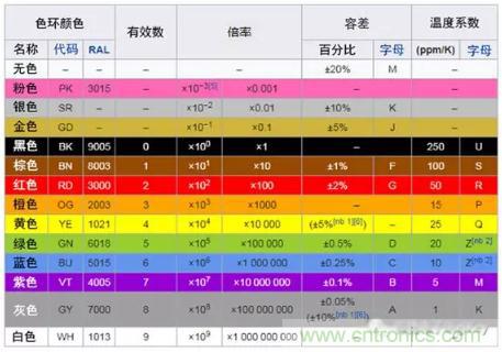 根據(jù)IEC 60062:2016的規(guī)定,標(biāo)準(zhǔn)顏色代碼可能表示溫度系數(shù)。