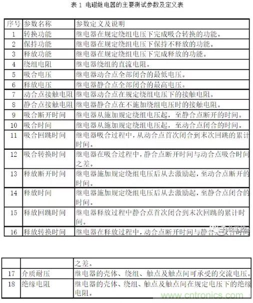 【導(dǎo)讀】為保證繼電器的質(zhì)量,表1所列參數(shù)都應(yīng)嚴格進行測試,但其中有些參數(shù)的測試特別需要引起我們的注意。本文將介紹繼電器主要測試參數(shù)的注意事項與方法。